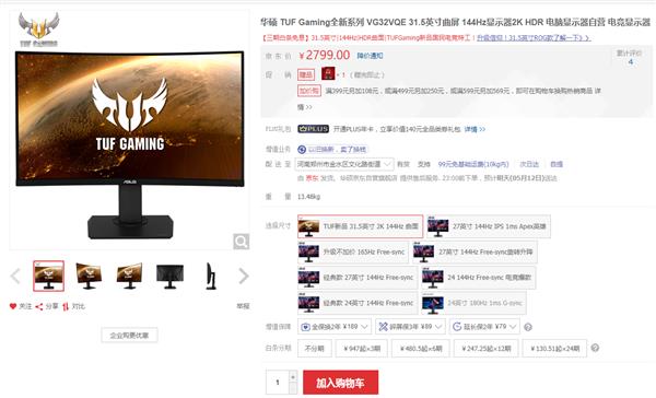 华硕TUF Gaming VG32VQE显示器日前已经上市开卖,国内售价2799元。