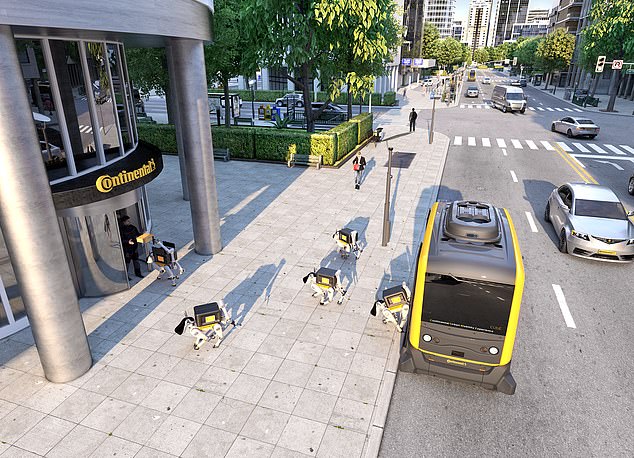 德国大陆集团在消费类电子产品博览会上播放的视频展示了送快递的全过程:一只机器狗从面包车里跳出,爬过模型房屋前的花园,爬上通往大门的楼梯。到门口后,它把包裹从背上滑下来,放在前廊地板上,然后用一只胳膊按响门铃。完成任务之后,机器狗甚至还会俏皮地扭动身躯,跳一支胜利的舞蹈。
