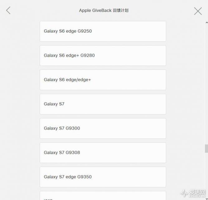 三星—— 苹果给出的三星手机型号列表跨度从B9120起,到Galaxy S7/Note 5止,S8及往后的新机不接受折价换购(Note 7炸了所以不在列),统统回收处理。通过换购三星手机,你将能获得最高510元RMB的iPhone新机购买折扣(选择Galaxy S7 edge)。额外友情提醒,三款列出的W系列老手机同样统统回收处理。