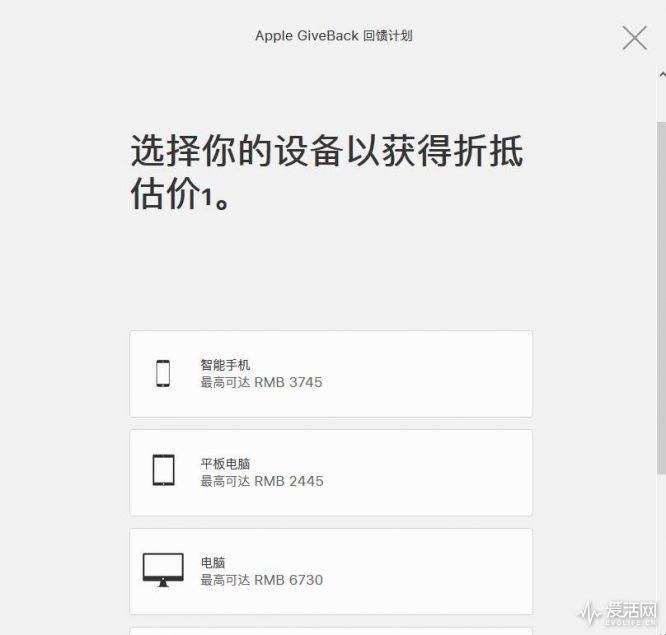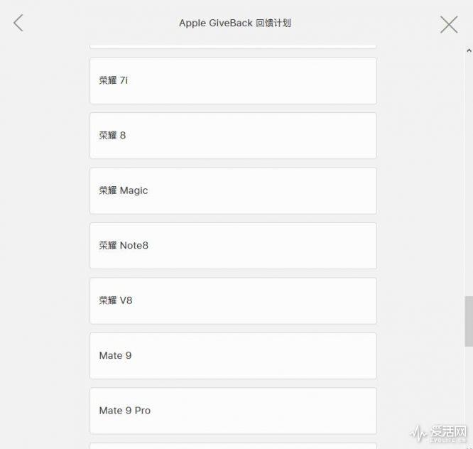 乍一看上去好像除了起价相当诱人之外,点进去你就会发现其中玄机所在——苹果在自己的GiveBack回馈计划中,新增了除iPhone之外的另外五个大品牌手机的折旧抵扣换购新机权益。平板电脑、电脑、手表仍然只支持自家设备的折价换新,其他品牌设备仅仅是免费回收。