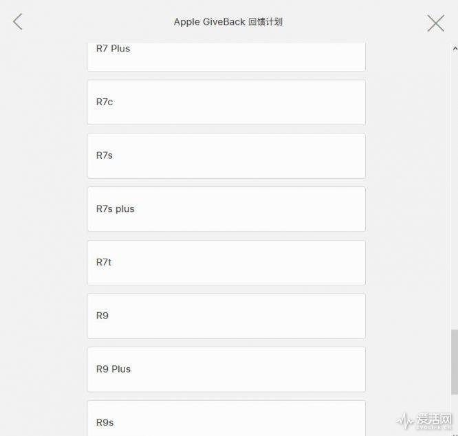 Oppo—— 苹果给出的Oppo手机型号列表跨度从A30起,到R11止,R11后的新机不接受折价换购,统统回收处理。通过换购Oppo手机,你将能获得最高510元RMB的iPhone新机购买折扣(选择R11)。