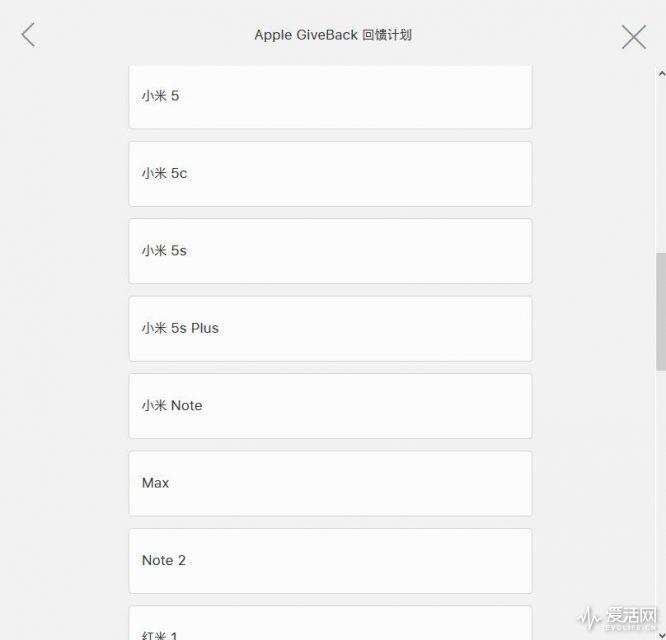 小米—— 苹果给出的小米手机型号列表跨度从小米2起,到小米5s Plus/Note 2止,往后的新机不接受折价换购,统统回收处理。通过换购小米手机,你将能获得最高400元RMB的iPhone新机购买折扣(选择128GB 小米Note 2)。
