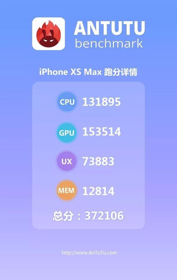 今天,安兔兔官方公布了iPhone XS Max的跑分,结果高达372106,再次创造新纪录。