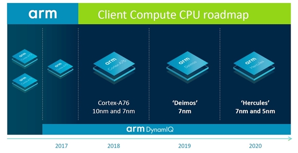 按照ARM官方路线图,CPU核心方面,接棒现在A76的是改良版“Deimos”(希腊神话中的恐惧之神得摩斯),性能提升高达20%。 不出意外,“骁龙865”或会延续这样的升级策略。